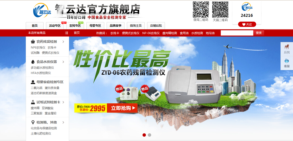 智云達食品檢測天貓ZYD旗艦店成立兩周年以來,在激烈的網購市場競爭中脫穎而出,網購快檢產品銷量遙遙領先。