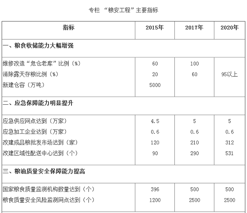 通過實施“糧安工程”,將全面深化細化和拓展《糧食行業“十二五”發展規劃綱要》目標,并使其更清晰完善。進一步加強糧食倉儲物流設施、糧油質量安全檢驗監測能力建設和農戶科學儲糧專項,補充完善應急供應體系、強化糧情監測和促進節糧減損等相關目標,并將相關建設目標延伸到“十三五”時期。