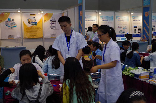 下午由北京智云達科技有限公司在N3展館的食品安全與質量檢測體驗互動示范區做快檢實操培訓,技術人員主要帶領大家做“地溝油”檢測、粉絲、銀耳、冰糖中二氧化硫的快速檢測、蔬菜中的農藥殘留檢測、牛奶中的三聚氰胺檢測、瘦肉中“瘦肉精”的快速檢測等實驗。通過帶領大家親自動手操作,讓大家進一步了解快檢,體會到快檢的優勢。