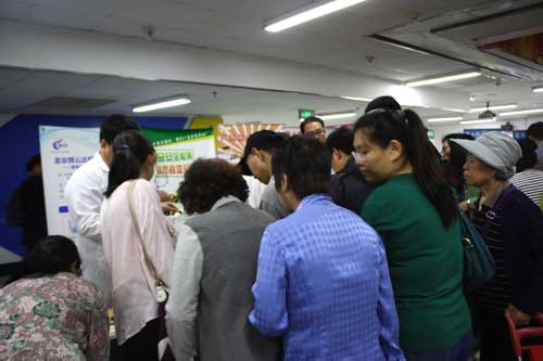 在負一層主場活動展示區人潮涌動。這個展區注重互動性、體驗性與參與性。北京智云達現場展示的食品安全快速檢測儀及食品安全快速檢測盒,吸引了大批圍觀群眾。