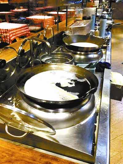 “廚房是開放式的,透過玻璃窗看見他們就那樣在鍋里涮抹布。”提到28日晚自己看到的情形,于女士仍有些生氣。于女士告訴北青報記者,28日晚8點50分左右,曾在王府井大街北京APM購物中心的“西貝莜面村”店內就餐,“當時店里的員工說他們是晚上9點‘閉餐’,不能加菜了,然后店里有不少服務員正在打掃衛(wèi)生。”于女士回憶,因為店內的廚房是透明玻璃窗、朝著店內的,“吃飯時就看到廚房里有一個廚師把擦玻璃的抹布放在平時炒菜的鍋里涮。”于女士出示了當時自己拍下的幾張圖片,其中一張圖片中顯示,兩口炒菜鍋內盛放著帶有泡沫的液體,其中一口鍋內還泡著沾有油漬的抹布。