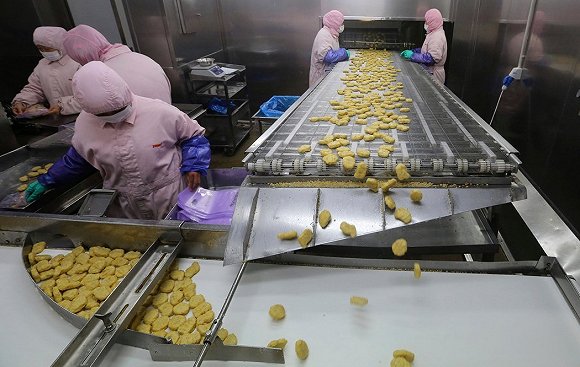 上海福喜食品公司工廠內(nèi)的生產(chǎn)線。(圖片來源:REUTERS)