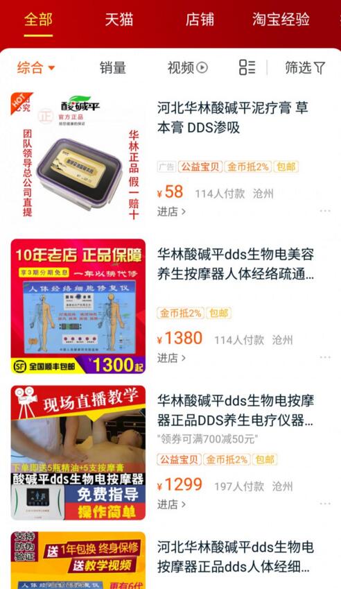 不過在淘寶、京東等電商平臺,搜索河北華林、酸堿平DDS等關鍵詞時,發現仍有部分該系列產品在售賣,售價從幾百元至幾千元不等。
