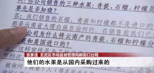 經過市場監管部門調查核實,這些水果并非進口,而是國產的。南京市玄武區市場監管局新街口分局張家佳告訴記者:“當時我局在超市發現這個來源不明的水果的時候,立即要求下架處理,并且供貨商也承認,他們的水果是國內采購過來的,說他們的水果來自云南。我們以涉嫌虛假宣傳進行立案調查。”