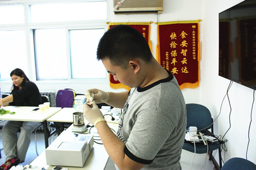 下午由河北農業大學食品質量與安全專業于鳴訓講師帶領學員自己動手操作檢測了油菜中的農藥殘留,牛奶中三聚氰胺檢測、枸杞二氧化硫檢測、亞硝酸鹽檢測,地溝油檢測等。學員熱情度很高,課程結束了還意猶未盡,在輕松的學習氛圍中進一步了解快檢,應用快檢。