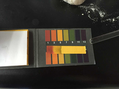 (2) 檢測 在試管中加入硼酸硼砂試劑使ph低于3,用硼砂試紙尖端沾取樣品溶液后取出,用電吹風吹干后觀察試紙變色情況。