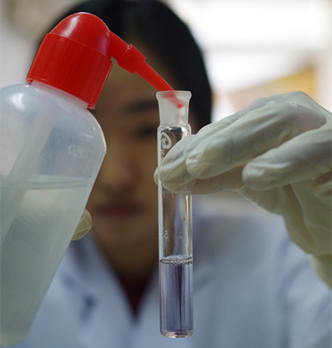 1、樣品管:取0.4 mL樣品液于10 mL比色管中,加B溶液1 mL、C溶液0.2 mL,混勻,加D溶液0.4 mL,搖勻,再加E溶液0.4 mL,立即用蒸餾水稀釋至5 mL刻線,搖勻,靜置20 min,進行檢測。
